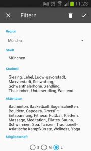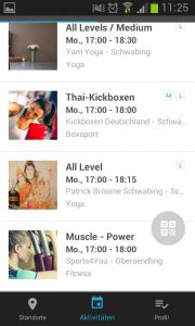 Und dann kann es eigentlich auch schon losgehen: Stadt, Zeit, Sportart auswählen, einchecken und los geht’s mit dem Sporteln.