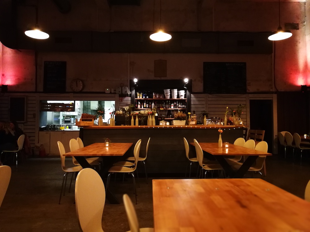 Seit Mai gibt es hier mittags und abends Indisches Essen, ausgefallene Drinks auf der großen Sonnenterrasse bis spät in die Sommernächte hinein (immerhin dürfen sie die wahrscheinlich einzige Terrasse Münchens ihr eigen nennen, die nicht von Anwohnern umgeben ist!) und am Wochenende Brunch oder einen großen Kaffee für den Heimweg nach dem Feiern.