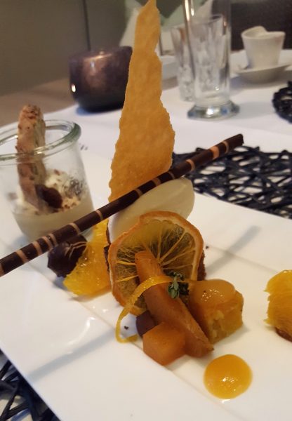 Da ist es nur schlüssig, dass es nur in der Lobby WLAN gibt, auf dem Zimmern steht dafür ein Kabel zur Verfügung und beim Essen wird darum gebeten, das Handy auszuschalten. Gar nicht mal so einfach, wenn man die kleinen Kunstwerke aus der Küche vorgesetzt bekommt. Da gibt es das Carpaccio vom Tiroler Grauvieh mit Pfifferlingen, Rucola, Parmesan und Balsamico – alles in Bioqualität oder eine Variation – wie man so schön sagt – aus Sacher, Marille, Orange und Kaffee, vorgesetzt vom Koch und Konditor Manuel Fliegl. Überflüssig zu sagen, dass man bei jedem Bissen des fünfgängigen Genießermenus dahinschmilzt.