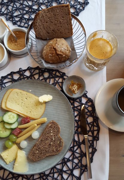 - Frühstück mit selbstgepresstem Saft.