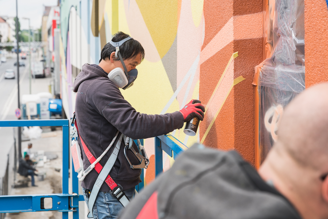 Buntes Obersendling: 600m2 Fassadenkunst von SatOne und Daniel Man