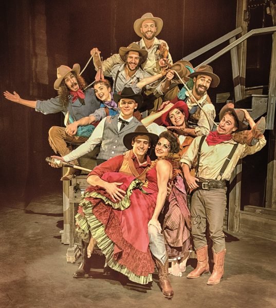 Was gehört noch zum Western-Feeling dazu? Genau: eine Klopperei im Saloon bei Bier und Eifersüchteleien als Grande Finale. Es folgt ein Szenario à la „Cowboys Gone Wild“ und plötzlich drehen alle durch: Einer der Cowboys geht mit Stuhl alias Stierhörnern auf einen Anderen los, der ein rotes Tuch in den Händen hält. Andere prügeln sich gekonnt pantomimisch von dem Gerüst und dann plötzlich wird eine Wunderkerze – ganz offensichtlich eine Bombe – wild und ohne Rücksicht auf Verluste durch den Raum geworfen, von einen zum anderen und schließlich Baaaaaammm – die Explosion.