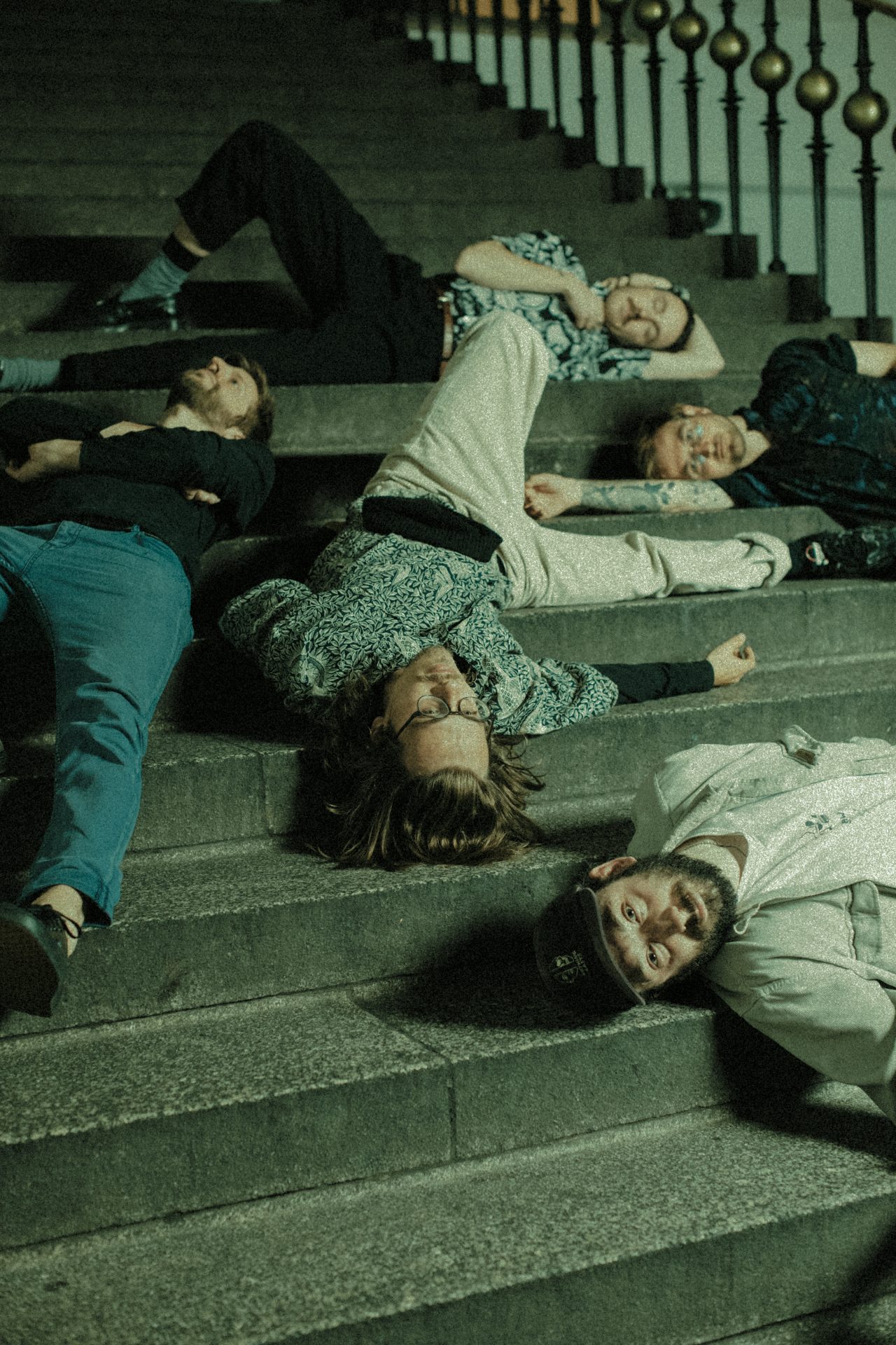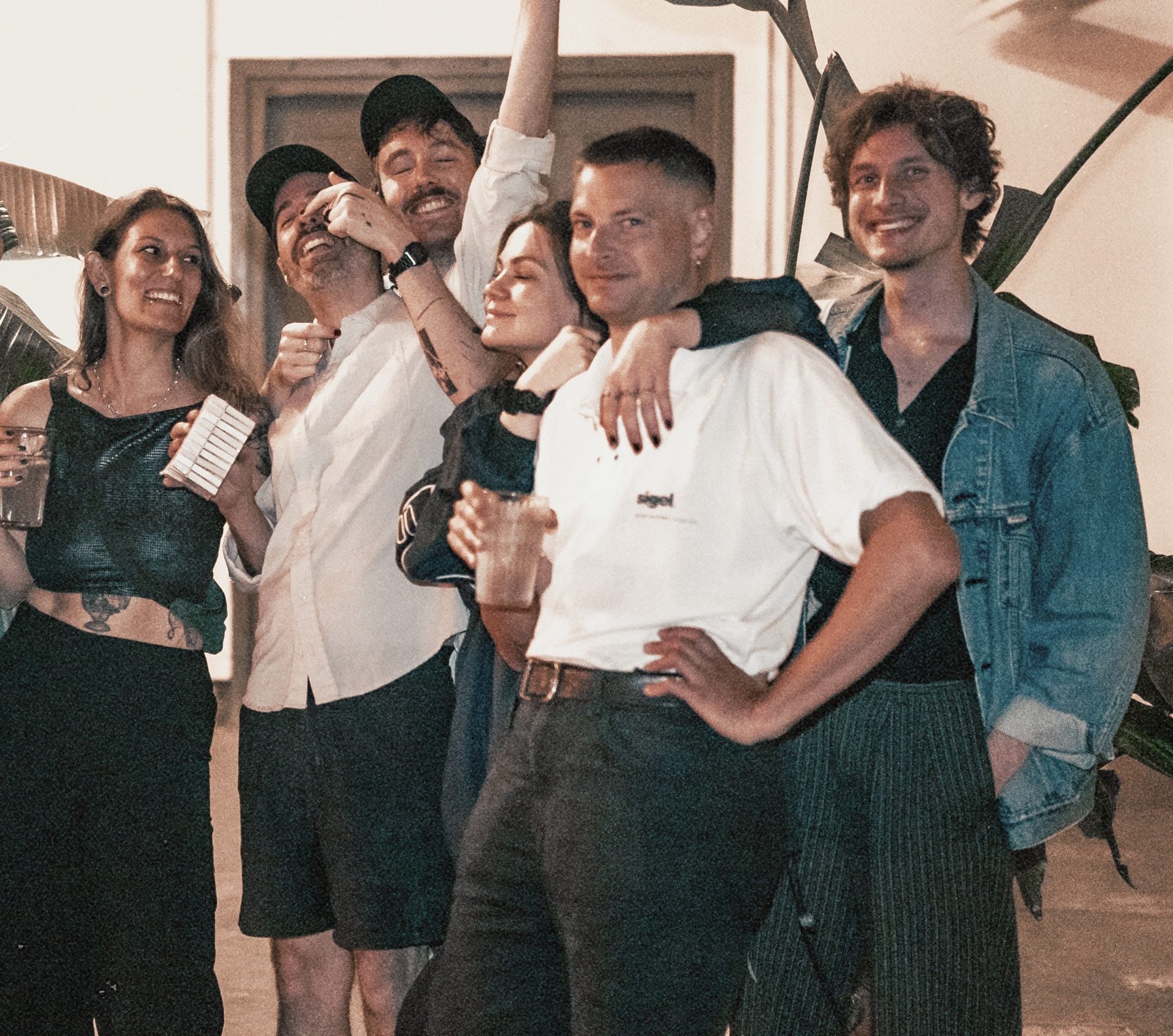 Titelbild: Das Kollektiv CoreChaos mit Friends und Kollegen Andor Bencze & Thomas Schamann (Grotto Terrazza) (v.l.n.r.) Marietta Jestl, Andor Bencze, Alex Friedrich, Jany Irro, Grotto Terrazza, Marcel Peter ©CoreChaos