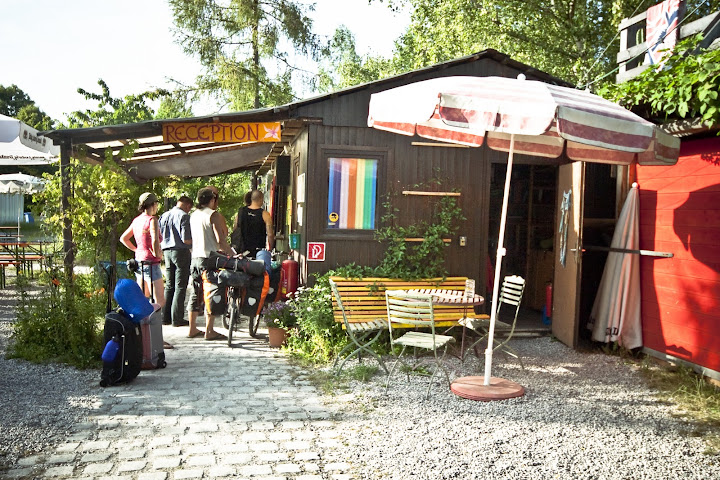 Sadly, there’s no water at all (there were just more trees and some tennis courts), but one lesson I’ve learned since living in Bayern is that der See, for many people, is the sea. The entrance to place is on a street called In den Kirschen, and its proximity to Nymphenburg almost had me on the lookout for a baron in the cherry trees, that’s how poetic it was. On Google Maps/Earth, you will find the campsite under the name of Internationales Jugendübernachtungscamp Kapuzinerhölzl, but people simply call it the Tent.