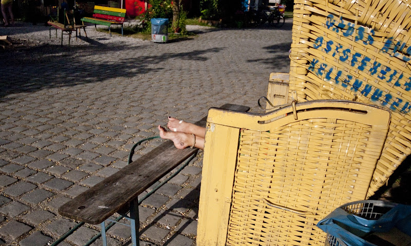 But allow me get to the point: if you don’t have the time to go on a holiday or if you really really long for a summery atmosphere but fail to find one on the marvelously warm Isar bank, go to the tent. If you’re lucky, you might even get to see some outdoor cinema or some live singing. Martin told me there are neighbors who just hang out there all day long. I wonder if they also shower there.