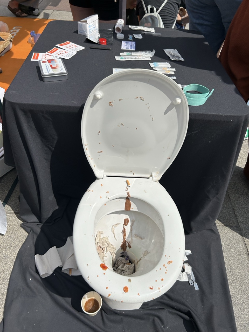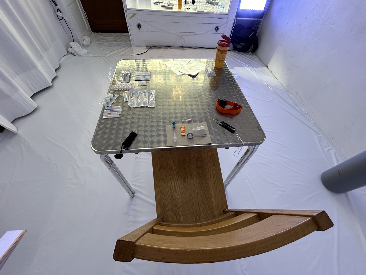 Aktuell stiegen die Zahlen von HIV-Infektionen und auch von drogenbedingten Todesfällen. Laut Aidshilfe liegt Bayern dabei bundesweit auf Platz drei mit 257 Todesfällen in 2023. Die HIV-Diagnosen bei Drogenkonsumierenden hätten sich verdoppelt. “In den Konsumräumen sind durch die Abgabe von sauberen Utensilien HIV-Infektionen und durch das anwesende medizinische Personal Todesfälle ausgeschlossen”, sagt Schäffer MUCBOOK im Gespräch vor dem Konsumraum-Kunstprojekt. 638 Mal sei im vergangenen Jahr medizinische Notfallhilfe in Konsumräumen geleistet worden. Viele der Betroffenen wären ohne Konsumraum wohl verstorben. “Ohne die Konsumräume, die es in den anderen Bundesländern gibt, wäre die Zahl der Drogentoten wohl deutlich höher als sie aktuell ist”, sagt Schäffer. In Bayern hingegen müssten Abhängige auf der Straße oder im privaten Rahmen konsumieren. Das koste im Schnitt alleine in München einen Menschen pro Woche das Leben. “Es ist Zeit, dass Menschlichkeit und wissenschaftliche Evidenz wieder über moralische Bedenken gestellt werden. Es gibt für alle Bedenken erprobte Lösungen!”, sagt Schäffer.