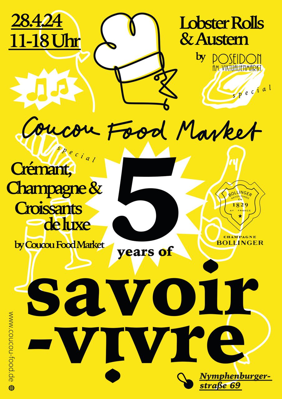 * 5 YEARS OF SAVOIR VIVRE (Coucou 5-Jahresfeier) mit Lobster Rolls & Austern by Poseidon sowie Crémant, Champagne und Croissants de Luxe by Coucou Food Market / Sonntag, 28.4. 11-18 Uhr