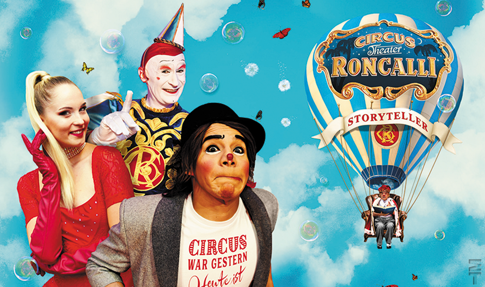 Bereits 800.000 begeisterte Zuschauer erlebten Bernhard Paul’s neuestes Meisterwerk „Storyteller-Gestern, Heute, Morgen“. Jetzt kommt das umjubelte Spektakel 2019 nach München. Das Gastspiel findet vom Samstag, den 12. Oktober bis zum Dienstag, den 12. November auf dem Kreativquartier am Leonrodplatz statt. Bernhard Paul’s Circus-Theater Roncalli ist ein poetisches Schauspiel für Jung und Alt. Bereits zu den Anfangszeiten Roncallis gelang es dem Direktor und Gründer, nicht nur preisgekrönte und lang für die Manege verloren geglaubte Stars, sondern auch außergewöhnliche Vertreter anderer Kunstformen in seinen Circus zu holen und so seinem Publikum immer wieder ganz neue Geschichten zu erzählen.