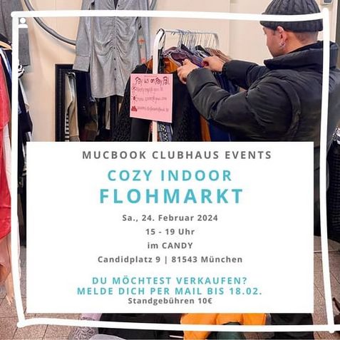 Entdecke bei unserem COZY INDOOR FLOHMARKT im CANDY – MUCBOOK CLUBHAUS einzigartige Schätze und Schnäppchen. Komm vorbei zum gemeinsamen Stöbern, wir freuen uns auf dich!