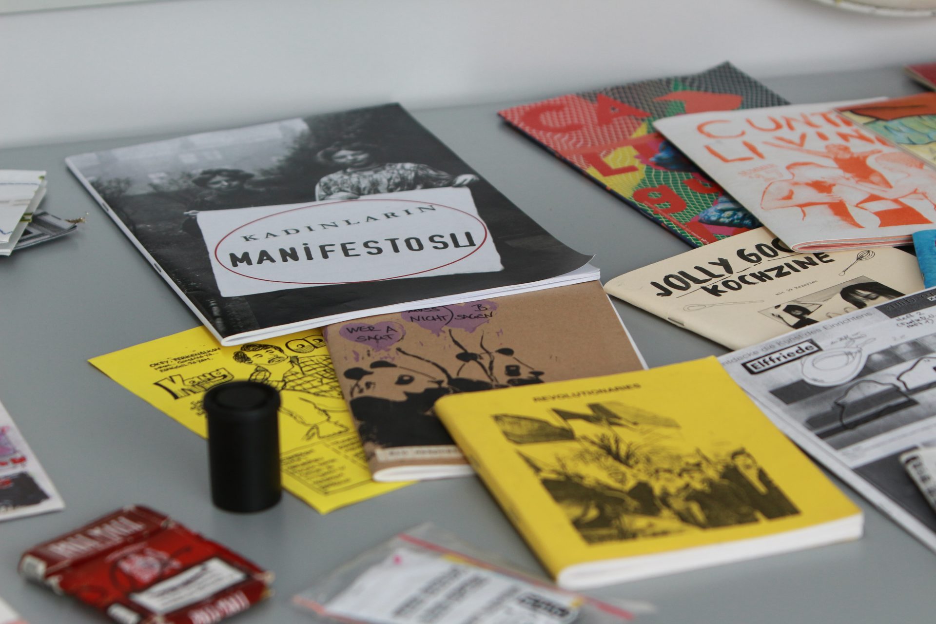 Die Münchner Künstler*innen Stephanie Müller und Klaus Erika Dietl vom MEDIENDIENST LEISTUNGSHÖLLE gestalten und tauschen seit vielen Jahren Zines. Im Workshop gibt Stephanie Müller einen kleinen Einblick in ihr Zine-Archiv, das sie vor 20 Jahren angelegt hat. Der Fokus liegt dabei auf Zines, die einen queerfeminstischen Ansatz verfolgen. Sie bringen Missstände wie sexualisierte Gewalt und Alltagsrassismen zur Sprache und decken Ausbeutungsmechansimen mit Biß und Humor auf. Konsumkritik, Modeaktivismus und DIY-Strategien werden groß geschrieben. Auch Seltenes aus den Bereichen Film, Literatur, Musik und Kunst findet hier ein Kommunikationsforum.