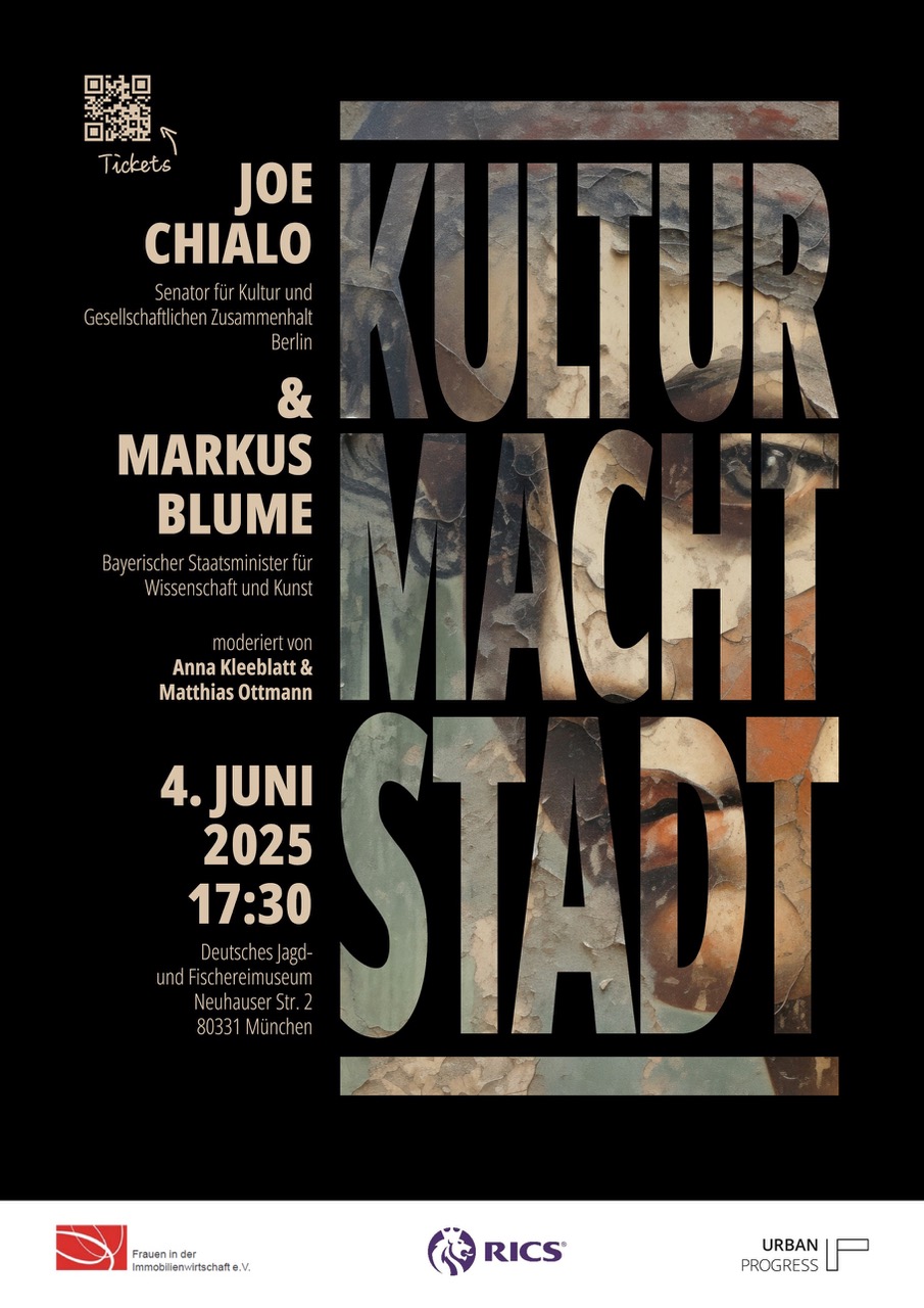 Es erwartet Sie ein Abend mit spannenden Impulsen zu Kultur, Stadtentwicklung und Investitionen – moderiert von Anna Kleeblatt und Matthias Ottmann. Für Austausch und Networking ist gesorgt: bei Buffet und Ausklang auf der Rooftop-Terrasse mit Blick über München.