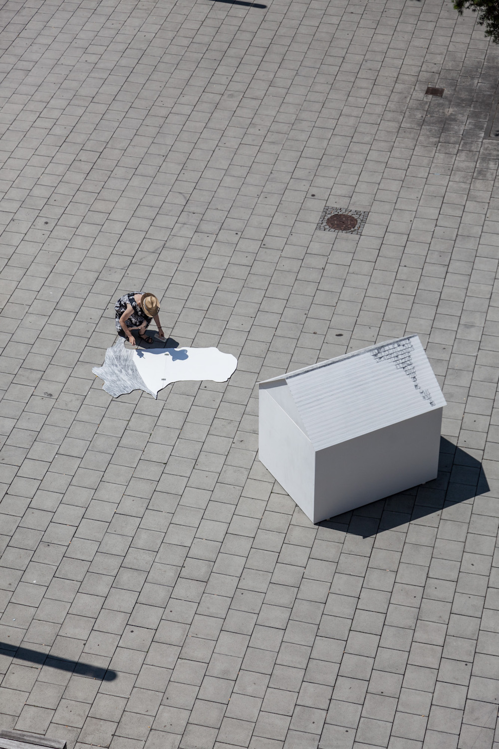 Angelehnt an die Geschichte des amerikanischen Aussteigers und Philosophen H. D. Thoreau, verpflanzt sie in ihrer Performance Waldenbergl eine Skulptur von dessen Hütte auf einen Platz am Münchner Hasenbergl und untersucht, was passiert, wenn man an einem urbanen Ort für einen Tag im Sommer 2017 zum Einsiedler wird.