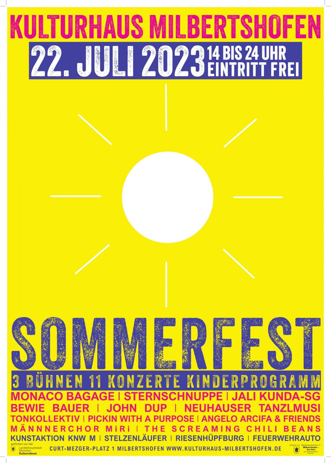 Das Kulturhaus Milbertshofen veranstaltet am 22. Juli 2023 von 14-24 Uhr ein großes Sommerfest.