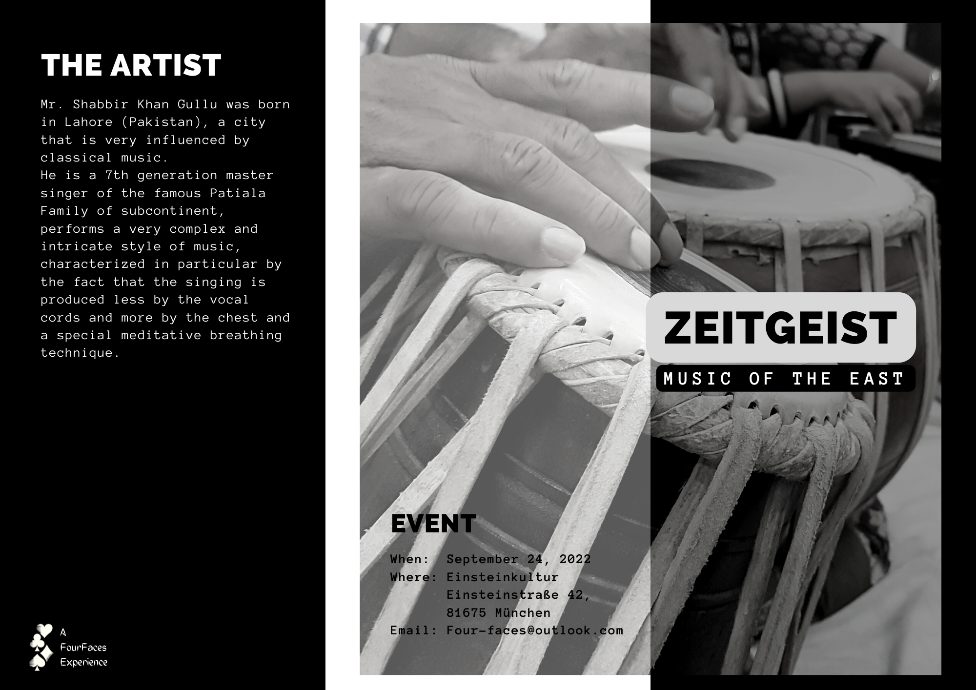 Der Meister Sänger Shabbir Gullu hat diese Kunst, die sich seit sieben Generationen in seiner Familie befindet, sein Leben lang perfektioniert. In München wird er seine Kunst zum ersten Mal für Internationalen und deutsche ZuschauerInnen präsentieren. Die Kompositionen der Instrumente und des Gesangs sind zu einem Teil festgelegt, aber der größte Teil wird improvisiert. Dies verleiht der Musik eine spontane Freiheit, die jeden Künstler*in und jede Darbietung zu etwas ganz Besonderem macht.