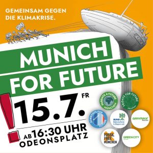 Find out more »Lasst uns laut sein für das Klima! Wann, wenn nicht jetzt, können wir Mehrheiten sichtbar machen und gemeinsam den Aufbruch in eine klimagerechte und erneuerbare Zukunft gestalten? Daher hat sich in München ein Bündnis formiert (bestehend u.a. aus Fridays-, Parents- und Scientists For Future, Bund...