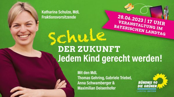Find out more »Wann? Mittwoch, 28. Juni 2023, 17 Uhr (Einlass: 16 Uhr) Wo? Bayerischer Landtag, Max-Planck-Str. 1, 81675 München Wie sieht die Schule der Zukunft aus? Wie gestalten wir Lernen individuell und zeitgemäß? Wie können wir jedem Kind in unserem Bildungssystem gerecht werden? Darum geht’s am 28....