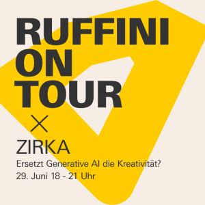 Find out more »Das Kompetenzteam Kultur- und Kreativwirtschaft veranstaltet mit RUFFINI ON TOUR eine neue Eventreihe, die aktuelle Themen aus dem RUFFINIHAUS Creative Hub nach außen trägt. Neben inhaltlichen Impulsen steht auch der persönliche Austausch im Mittelpunkt. Die erste Veranstaltung des Formats findet am 29. Juni 2023 im ZIRKA - Zentrum für interdisziplinäre Raum- und...