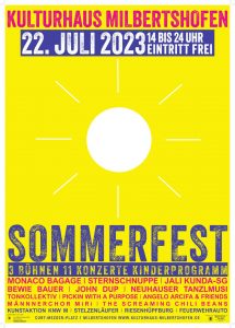 Das Kulturhaus Milbertshofen veranstaltet am 22. Juli 2023 von 14-24 Uhr ein großes Sommerfest. Der Curt-Mezger-Platz wird für den Autoverkehr gesperrt und für die Bürger*innen zum kulturellen Mittelpunkt des Stadtviertels – zumindest für einen Tag. „Wir wollen alle Bewohner*innen des Viertels einladen, das Kulturhaus mit all seinen Angeboten...