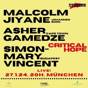 Find out more »Critical: Hope. Absolute Weltpremiere. Malcolm Jiyane (piano/trombone) aus Johannesburg, Asher Gamedze (piano, drums) aus Kapstadt, Simon-Mary Vincent (piano) aus Budapest im Theater im Fraunhofer in München! Diese von der Sophiatown Arts Akademy, dem Sophiatown Arts Festival, dem Haus Steingraeber und der Universität Bayreuth ermöglichte Künstler:innen-Begegnung...