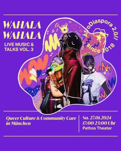 Queer Culture and Community Care in München Wahala Wahala live music & talks ist immer ein Paneltalk, eine Live music Performance und eine Party (mit Live DJ Set). Und das alles an einem Abend. Wir sprechen über uns wichtige Themen, mit uns wichtigen Menschen & feiern...
