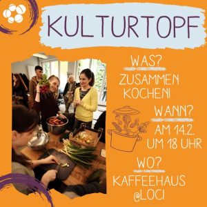 Find out more »Koch mit uns - beim “Kulturtopf”! 👩🍳🧑🍳👨🍳 Der nächste “Kulturtopf” ist am Mittwoch, den 24.02. um 18 Uhr!🥄🥣🧂 Hast du Lust auf gemeinsames Kochen, nette Leute und viel Spaß? Dann komm zum Kulturtopf! Es gibt jedes Mal ein anderes Gericht, und wir kochen und essen...