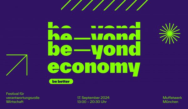 Find out more »Das Festival markiert den Aufbruch in Richtung einer digitalen und enkelfähigen Wirtschaft und schafft dafür Raum für Wissensaustausch, Netzwerkbildung und die Grundlage für gemeinsame Entwicklungsprojekte. Es ist der Start des beyond economy Movements, einer Plattform, die führende Akteure verschiedener Branchen der Wirtschaft, der Umwelt- und Nachhaltigkeitsszene und der Politik vereinen will.