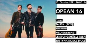 OPEAN The European Concert & Performance Festival kuratiert von Tobias Frank und Patrick Morarescu Eintritt: 1 EUR 20:00 Performance MEDIENDIENST LEISTUNGSHÖLLE – TOPSY-TURVY LIKE AN ELEPHANT LADY Klaus Erika Dietl und Stephanie Müller vom MEDIENDIENST LEISTUNGSHÖLLE kratzen am Konkreten. Ihre mixed media Arbeiten verstehen sie...