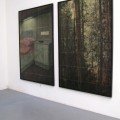 Anders als bei Mersinis basieren Reitmeiers Arbeiten auf der digitalen Fotografie. Seine großformatigen Landmarken sind farbige Naturstudien und Ausschnitte von Innenräumen, durch die Erinnerungen und Stimmungen wach werden. Ein warmes, aber diffuses Licht gestaltet die Bilder und in diesem gedämpften Lichtschein klingen Gedanken und Gefühle des Fernwehs an. Reitmeiers Arbeiten sind keine Fotoabzüge eines Bildes im Ganzen, sie setzen sich vielmehr aus kleinen Einzelbildern wie in einer Kachelung zusammen. Die Mikrostruktur der kleinen Bilder ist von einem Raster schwarz-weißer Punkte geprägt. In der Makrostruktur bildet sich jedoch ein Gesamtmotiv heraus, das Reitmeier zusätzlich malerisch mit Tusche hervorhebt. Die Oberfläche der Arbeiten versiegelt er mit Lack, unter dem die kleinen Einzelbilder Folienfalten werfen und an fragile Abziehbilder erinnern. Reitmeier wurde 1979 in Trostberg/Bayern geboren und lebt in München und Zürich. Mersinis (*1978) stammt aus Athen und lebt derzeit in Glasgow.