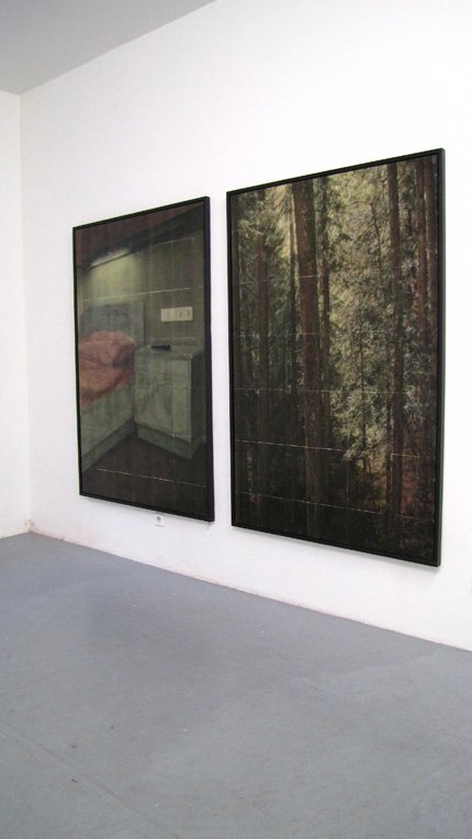 Anders als bei Mersinis basieren Reitmeiers Arbeiten auf der digitalen Fotografie. Seine großformatigen Landmarken sind farbige Naturstudien und Ausschnitte von Innenräumen, durch die Erinnerungen und Stimmungen wach werden. Ein warmes, aber diffuses Licht gestaltet die Bilder und in diesem gedämpften Lichtschein klingen Gedanken und Gefühle des Fernwehs an. Reitmeiers Arbeiten sind keine Fotoabzüge eines Bildes im Ganzen, sie setzen sich vielmehr aus kleinen Einzelbildern wie in einer Kachelung zusammen. Die Mikrostruktur der kleinen Bilder ist von einem Raster schwarz-weißer Punkte geprägt. In der Makrostruktur bildet sich jedoch ein Gesamtmotiv heraus, das Reitmeier zusätzlich malerisch mit Tusche hervorhebt. Die Oberfläche der Arbeiten versiegelt er mit Lack, unter dem die kleinen Einzelbilder Folienfalten werfen und an fragile Abziehbilder erinnern. Reitmeier wurde 1979 in Trostberg/Bayern geboren und lebt in München und Zürich. Mersinis (*1978) stammt aus Athen und lebt derzeit in Glasgow.