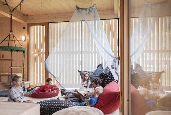 Aber auch die Zeit zu zweit kommt nicht zu kurz: Egal ob gemeinsam den Berg erklimmen, die Gegend erkunden oder ob man sich doch ins Spa zurück ziehen möchte. Eine viergeschoßige Wellnesslandschaft sorgt für erholsame Momente. Sie entspricht den Vegetationszonen der Berge: Eine Zirbensauna im Erdgeschoss, Heubetten, Dampfsauna in der dritten Etage und im Dachgeschoß befindet sich “der Gipfel”: Der Summit Garden mit Ruheliegen, Tauchbecken und Hot Pot.