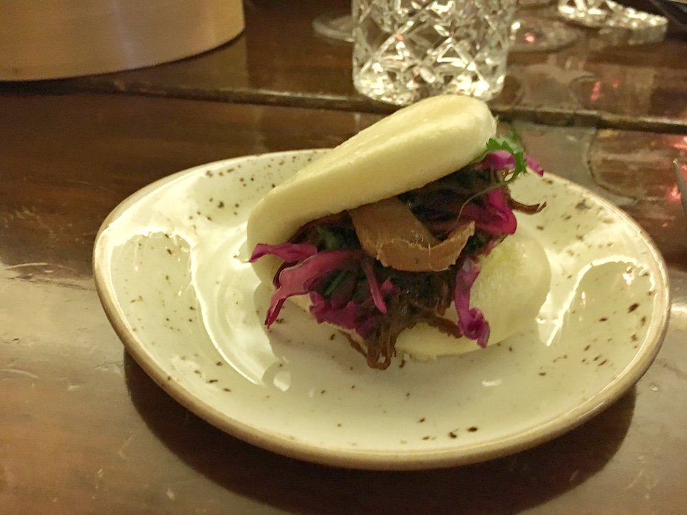 Eine Hommage an das Hausschwein nennt Vincent deshalb auch die Vorspeise seines eigens für das Popup Restaurant kreierten Mehrgang-Menüs. Wir starten mit eingelegten Radieserln auf Butterbrot, um dann gleich mit Herz weiterzumachen. Mutig beisse ich in die Ban Bao und stelle schon beim ersten Bissen fest: Die sind verdammt lecker.