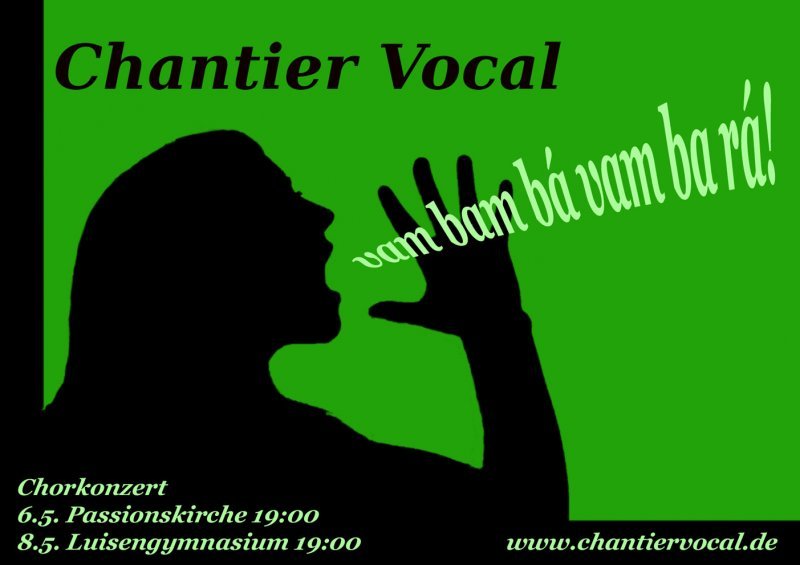 Chantier vocal probt einmal wöchentlich und bewegt sich mit Siebenmeilenstiefeln vorwärts – wohin, weiß man nicht immer so genau. Vermutlich immer in Richtung des nächsten Konzerts, aber vor allem hin zu mehr Homogenität, größerem Klangfarbenreichtum und ebenso wachsendem gegenseitigen Vertrauen und Verständnis.”