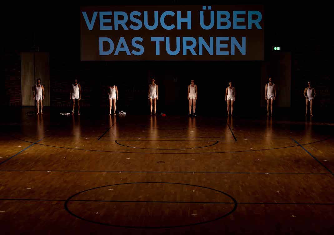 VERSUCH ÜBER DAS TURNEN Ein TANZFONDS-ERBE Projekt Essayperformance von HAUPTAKTION Von und Mit: Jonald Khodabakhshi, Dennis Kopp, Quindell Orton, Jasmina Rezig, Hannah Saar, Isabel Schwenk, Julian Warner, Oliver Zahn Assistenz: Nele Hussmann Dramaturgie: Josef Bairlein Video: Nicole Wytyczak