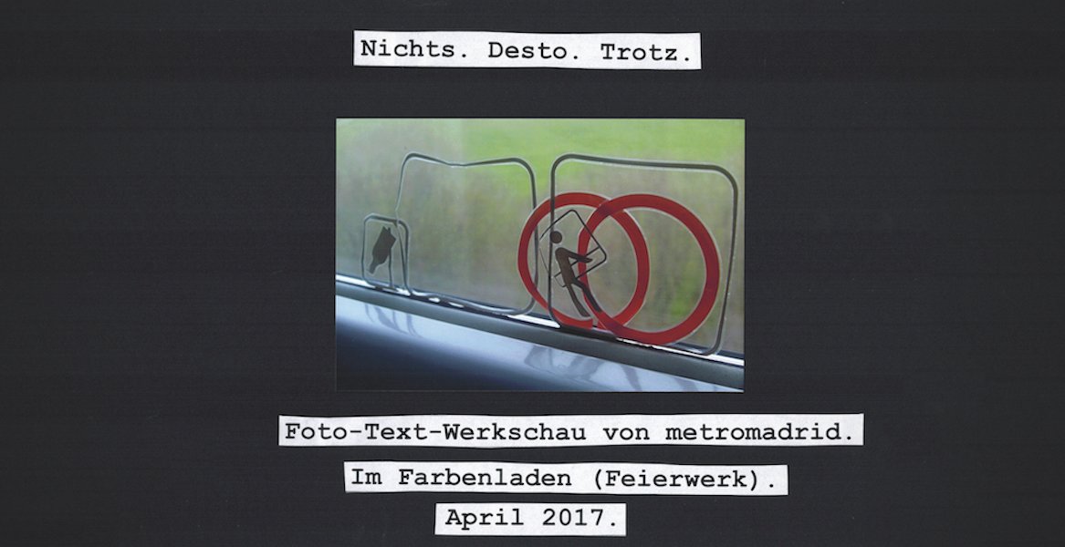 Die Foto-Text-Werkschau NICHTS. DESTO. TROTZ. von Thomas Steierer alias metromadrid. ist ein Plädoyer für Optimismus, Galgenhumor und Immerhin-Mentalität.
