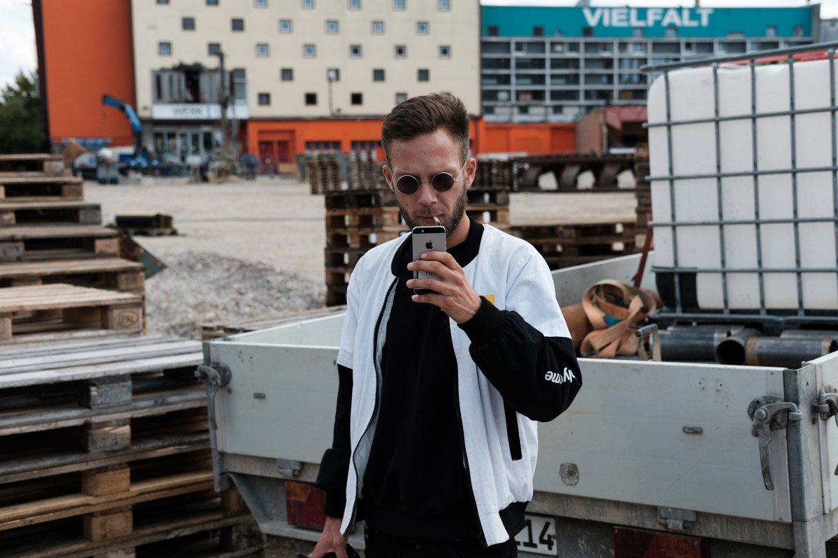 Mirko Hecktor tippt noch hektisch in sein anthrazitfarbenes Macbook als ich ankomme. Er sitzt in einem kleinen Durchgangszimmer, das ihm ein wenig Ruhe von den rund 15 jungen und älteren Jungs in den weißen T-Shirts bewahrt, die mit ihm und für ihn das FNY-Festival organisieren. Es herrscht konzentrierte Arbeitsatmosphäre, denn der Zeitplan ist mehr als knapp. Diesen Freitag wird – nach nur 3 Monate Planungsphase – das zehntägige Festival im Werksviertel steigen. Organisatorisch ein monumentaler Gewaltakt.