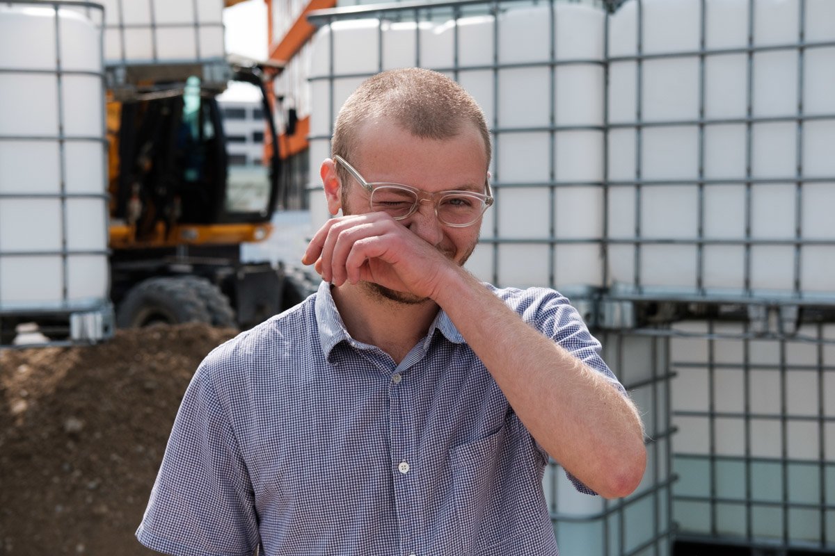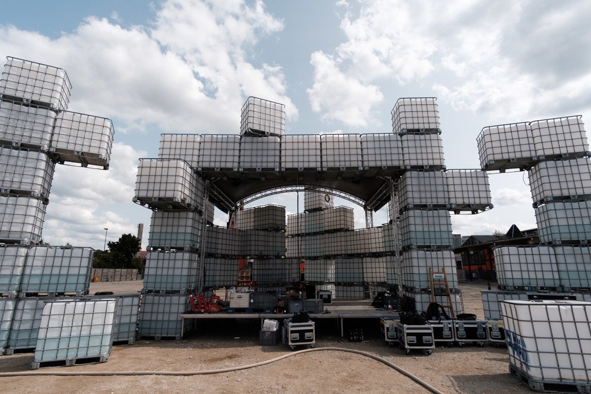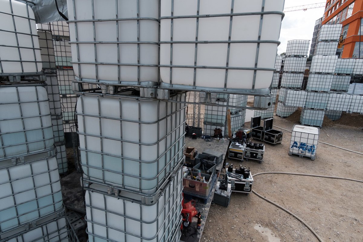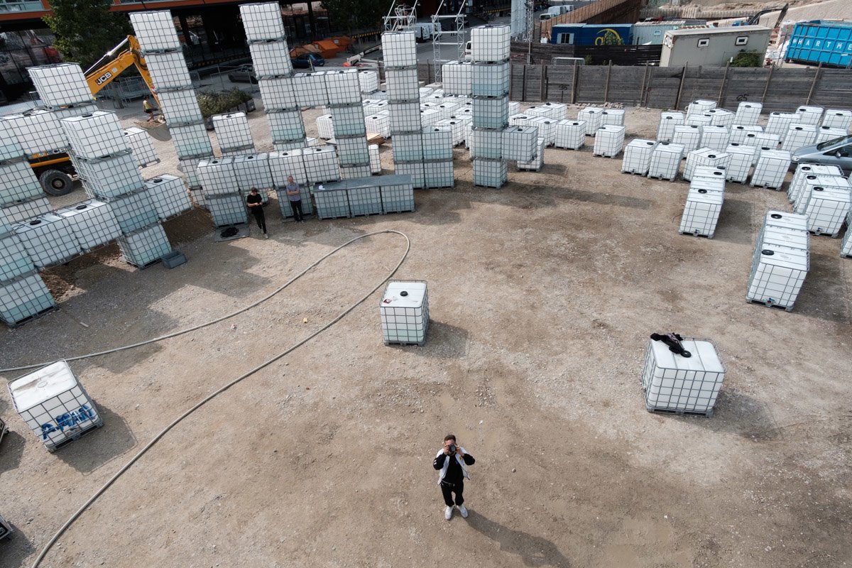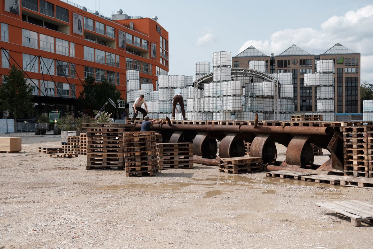 Mirko: Eine Freundin kam auf Hubertus Becker und mich zu. Dann fingen die Gespräche mit der OTEC an, die das Werksviertel entwickelt und verwaltet. Am Ende einigten wir uns auf das Baufeld, auf dem der neue Konzertsaal entsteht und die Tiefgarage. Dann kam der Marc und meinte: „Hey, ich wollte schon immer mal einen Kubik nach München holen. Warum machen wir nicht das?“. So entwickelte sich das nach und nach. Der Kubik wird nun relativ groß — 273 Wassertanks. Aber wie gesagt: Wir dachten, dass die Genehmigungen eigentlich da wären und dann wurd’s ein bisschen stressig.