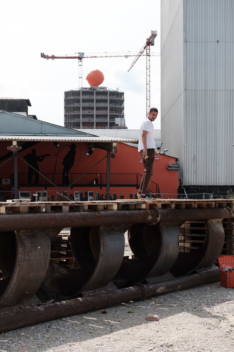 Mirko: Das Container Collective ist natürlich am Sonntag mit dabei, klar. Wir haben Radio 80000 mit eingebunden, das Monticule Festival wird mit eingebunden, das Container Collective baut eine Skate Rampe auf — die sind wirklich integriert. Wir versuchen auch, viele Mieter mit ins Boot zu holen. Es gibt ja bereits viele Shops auf dem Gelände. Es ist halt auch ein komplexes Gebilde. Das Viertel ist relativ groß und die vielen Leute, die hier wirken und arbeiten, ziehen natürlich auch nicht alle am selben Strang und da kommt es eben auch zu Reibungen.