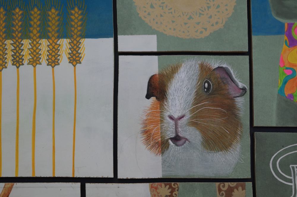 Ich mache meinem Namen schon mal alle Ehre. Ursprünglich ist das aus einem kleinen Linoldruck entstanden. Ich hatte einfach die Idee, die ganzen Drucke mal in Groß zu machen – aus Holzplatten und Farbe, ganz simpel.