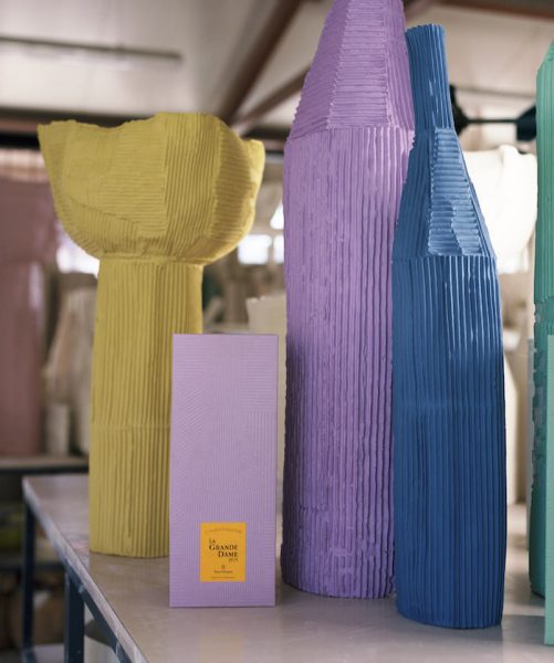 Um die Grande Dame zu zelebrieren, wurde die italienische Künstlerin Paola Paronetto, die für ihren farbentrohen und innovativen Stil bekannt ist, damit beauftragt, die Geschenk-Boxen für die Prestige-Cuvée „La Grande Dame 2015″ von Veuve Clicquot zu gestalten. Paola Paronettos Werke zeichnen sich nicht nur durch die bunten Farben, sondern auch die Kombination von Elementen unterschiedlicher Techniken aus. Sie entwirft nicht selten Werke, die eine Brücke von Skulptur hin zum Gebrauchsgegenstand bilden. So entstanden im Rahmen der Zusammenarbeit die „Giganti” – drei farbige Skulpturen in Form der ikonischen Veuve Clicquot Flasche.