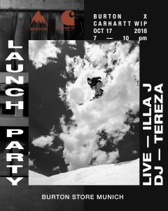 Am Mittwoch, 17.10. ab 19 Uhr steigt die Launch Party im BURTON Flagship Store in der Frauenstr. 10 am Viktualienmarkt. Dort erwarten dich eine Live-Show von Illa J und DJ Tereza, und natürlich ein exklusiver Sneak Peak auf die Highlight Styles!