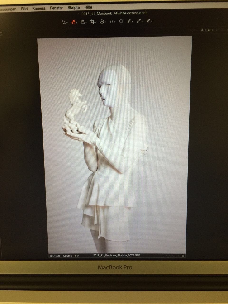 Unsere Aufgabe wird es heute sein, die Modestrecke für das neue MUCBOOK zu shooten. Denn im neuen MUCBOOK, bei dem sich ja alles um das Thema Design dreht, darf Mode natürlich nicht fehlen. Der unter Designern weit verbreiteten “Angst vor dem weißen Blatt Papier” zum Trotz wird die Modestrecke komplett in weiß gehalten –  also wirklich komplett in weiß.