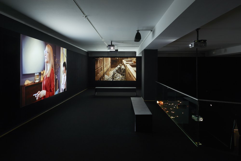 - Installationsicht “Manifesto. Julian Rosefeldt”, Museum Villa Stuck, Fotos: Jann Averwerser