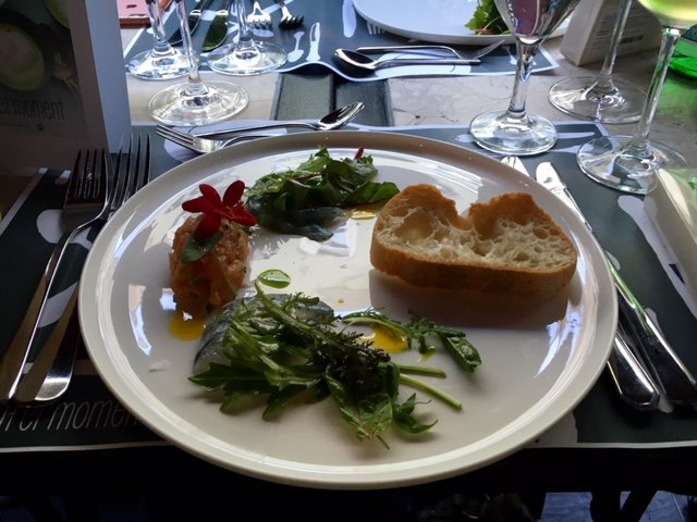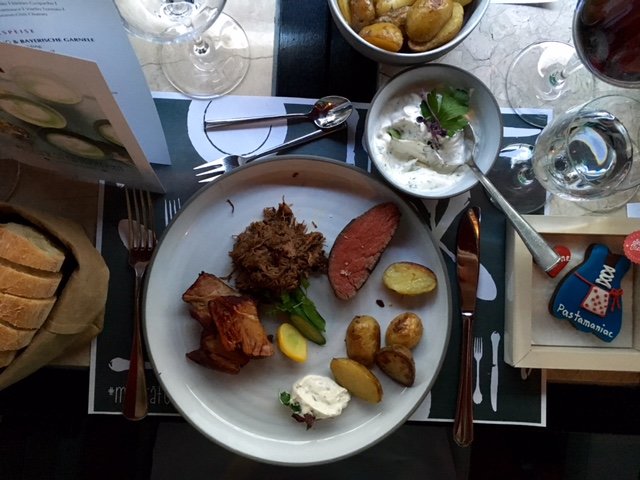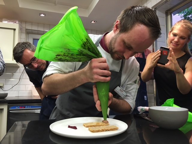 Während der ganzen Tour zeigt sich, wie serviceorientiert Käfer ist, und wie sehr der Kunde im Mittelpunkt steht. Wer möchte, bekommt seinen persönlichen Einkäufer zur Seite gestellt, die Lieferung ans Auto ist selbstverständlich. Zudem versucht das Geschäft, auf die Wünsche seiner Kunden einzugehen, ihnen Produkte zur Verfügung zu stellen, die sie gerne möchten. Manchmal sogar schon, bevor es der Kunde selber weiß. So gibt es für Veganer Produkte aus Tofu und Seitan, es gibt glutenfreies Brot, und wenn es der Kunde wünscht, wird ihm auch ein Weinkeller eingerichtet. Im Restaurant setzt der Betreiber auf traditionelle , hochwertige Küche, Schicki Micki und Gänsestopfleber haben ausgedient. Wir bekommen megaleckeres Fingerfood serviert: Vitello Tonnato, Risottobällchen auf einer wunderbaren Mayonaise, Rindertatar und eine fantastisch gewürzte Gazpacho. Zwölf individuell eingerichtet Stuben gibt es neben dem Restaurant, die man mieten kann, für Hochzeiten, Firmenevents oder andere Veranstaltungen.