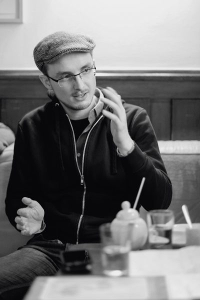 Moderator Jan Rauschning-Vits traf ihn an seinem Lieblingsplatz auf einen Kaffee, nämlich in der Loretta Bar, anschließend sind sie rüber ins Blitz, um in Ruhe weiter reden zu können.