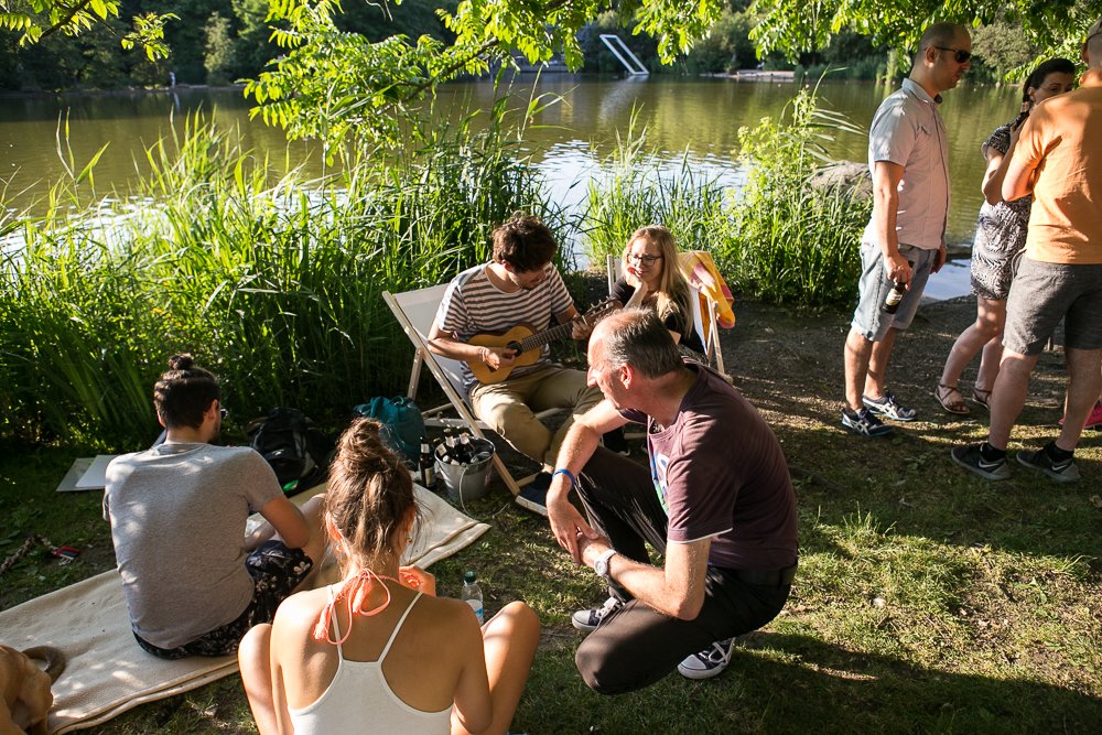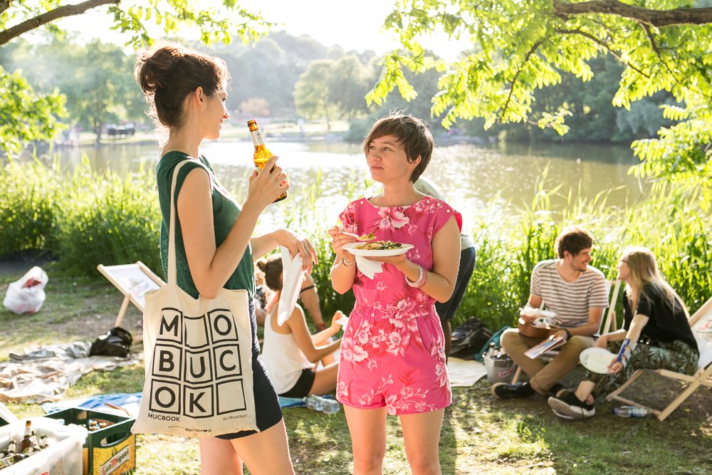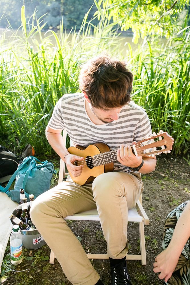 Der Abend klang auch sonst recht spanisch an: Der Singer/Songwriter Freddy González sorgte mit seiner Guitalele für Lagerfeuer-und Urlaubsflair und aus jedem Eck hörte man immer wieder Gesprächsfetzen auf Spanisch. Sei es die Köchin, die der ecuadorianischen Ex-Mucbook-Praktikantin das Rezept für ihre fabelhafte Paella verriet, die jungen Spanier, die lachend Fotos mit cerveza und Mucbook-Magazinen machten, oder die Reiseblogger, die sich über ihre Lieblingsorte auf der iberischen Halbinsel austauschten. Denn das war der Sinn der Grillveranstaltung: Blogger bei leckerem Essen, Bier und spanischem Flair zusammenzubringen und den Austausch voranzutreiben.