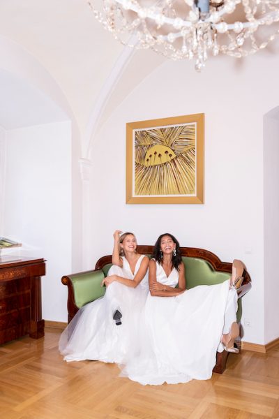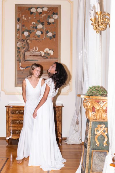 Dass das auch anders geht, hat Andreas bereits früh gelernt, denn seine Mutter führte schon in den 90ern ein Geschäft für Secondhand Brautmode. 2018 gründete Andreas gemeinsam mit Saskia, die Modedesign studiert hat, das Start-Up Kleider machen Bräute. Saskia und Andreas möchten damit die Brautmodewelt revolutionieren und den Blick weg von bloßem Konsum und hin zu mehr Nachhaltigkeit bei Bräuten schärfen. Denn das Wichtigste ist, dass sich die Braut in ihrem Kleid wunderschön fühlt und es zu ihr passt – und das geht am besten, wenn das Kleid nicht nur hübsch aussieht, sondern auch gut für’s Gewissen ist.