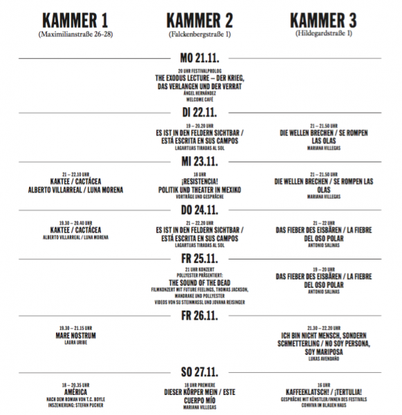Neben der Beschäftigung mit Fragen nach Herkunft und Identität sind viele der hier zu zeigenden Arbeiten von einer Auseinandersetzung mit der in Mexiko allgegenwärtigen Gewalt geprägt – und werfen so die Frage nach ihrer Darstellbarkeit mit den Mitteln des Theaters auf. Lassen sich diese künstlerischen Entwicklungen mit den hierzulande geführten Debatten um einen neuen Realismus und interventionistische Kunst kurzschließen?