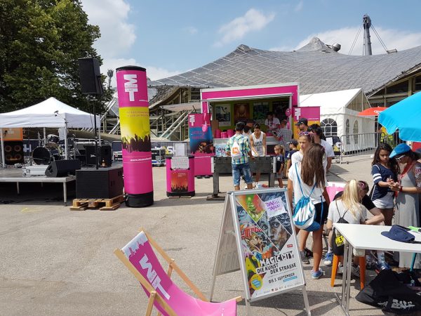 M: Beim Oben Ohne Open Air werden wir einen Promo-Stand haben und mit dabei ist wie immer unser Ticketmobil! Es gibt tolle Give-Aways, ihr könnt gegen uns beim Kicker antreten, eurer Wissen beim München Ticket-Quiz testen und natürlich gibt’s auch was zu gewinnen!