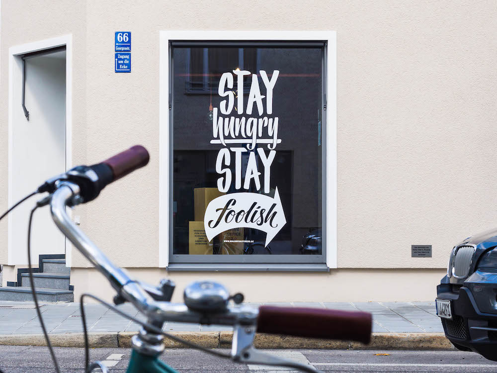 … außerdem Schöpferin des ‘Weniger Bussi Bussi, mehr Amore’ -Schriftzugs in unserem Ruffinihaus-Popup-Office und eine von nur sechs Adobe Creative Residents. Im Zuge des Adobe Creative Residency Programms konnte sich Rosa auch komplett ihrem Herzensprojekt widmen: Dem Walk of Happiness, einer Design-Tour durch verschiedene Städte mit erstem Stop im September 2017 in München. “Design-Tour”, damit gemeint sind eine Vielzahl von Letterings an Schaufensterscheiben, die die Innenstadt schöner machen und positive Vibes verbreiten sollen.