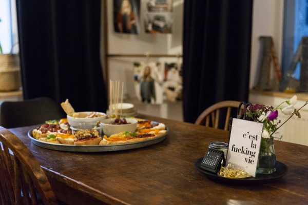 Völlig emissionsfrei knattern wir mit den Rollern weiter Richtung Haidhausen. Wobei die einzigen Geräusche eher vom Kopfsteinpflaster beim Maximilianeum hinauf verursacht werden. Ein leises Surren ist nämlich das Einzige, was so ein Emmy von sich gibt. Dafür knurrt unser Magen umso lauter, die frische Fahrtluft macht schon irgendwie hungrig. Gut, dass wir als nächstes bei Magdalena von Interior-Blog freemindedfolks halten. Mit den Rollern ist zum Glück auch die Parkplatzsuche kein wirkliches Problem, auch wenn das Aufbocken der Emmys gekonnt sein will. Magdalena empfängt uns in ihrem Hinterhof-Büro mit köstlichen Häppchen und plaudert aus dem nachhaltigen Nähkästchen. Slow Living und Green Lifestyle stehen bei ihr sowohl auf dem Blog als auch in ihrem Online-Shop ganz oben auf dem Plan und in ihrem verspieltem Atelier fühlen wir uns tatsächlich ein bisschen wie bei Alice im Wunderland zu Gast.